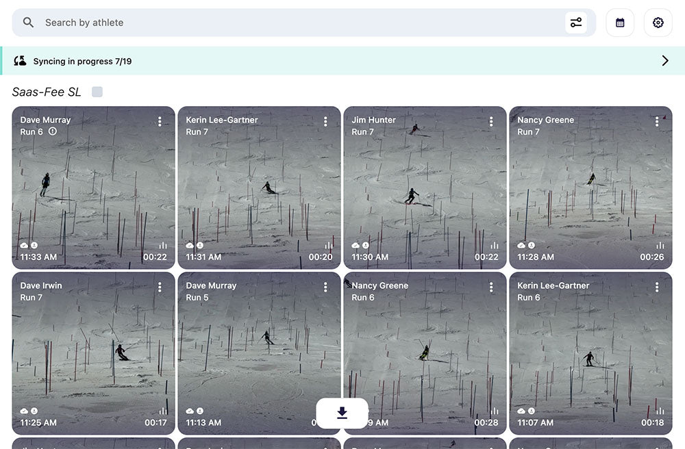 Coaches see organized video with athletes and runs already identified, without manual file handling or exporting to share.